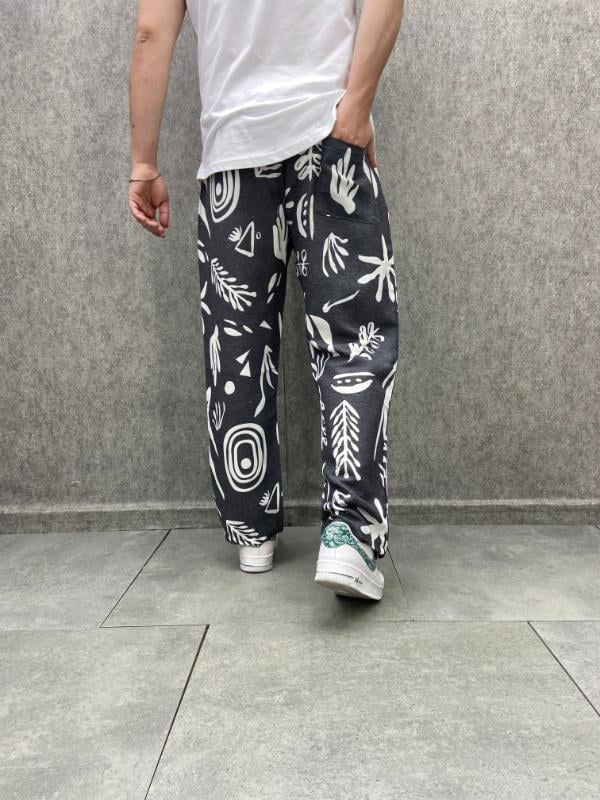 Beli Lastikli Kaşe Cep Nervür Detaylı Desenli Baggy Pantolon