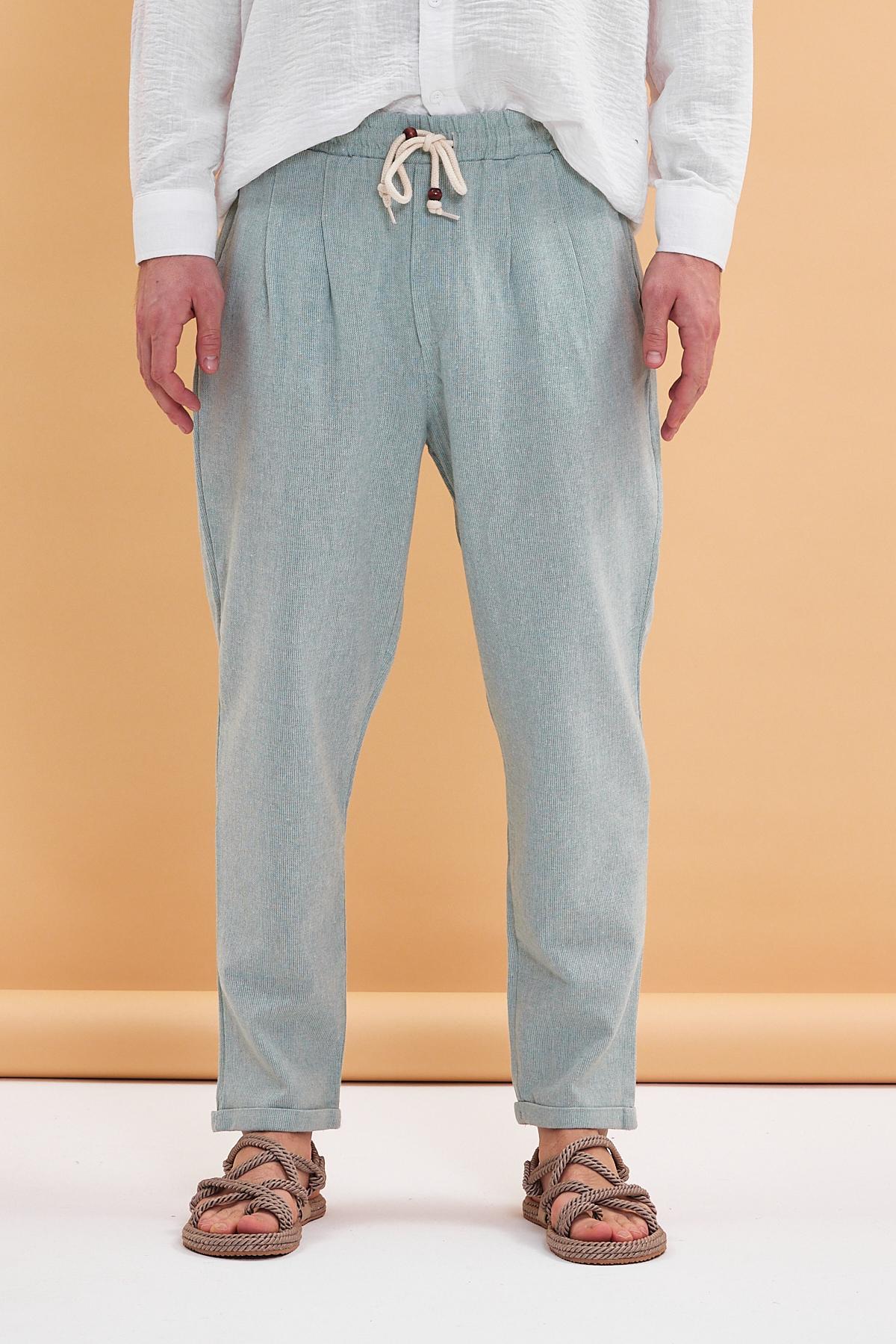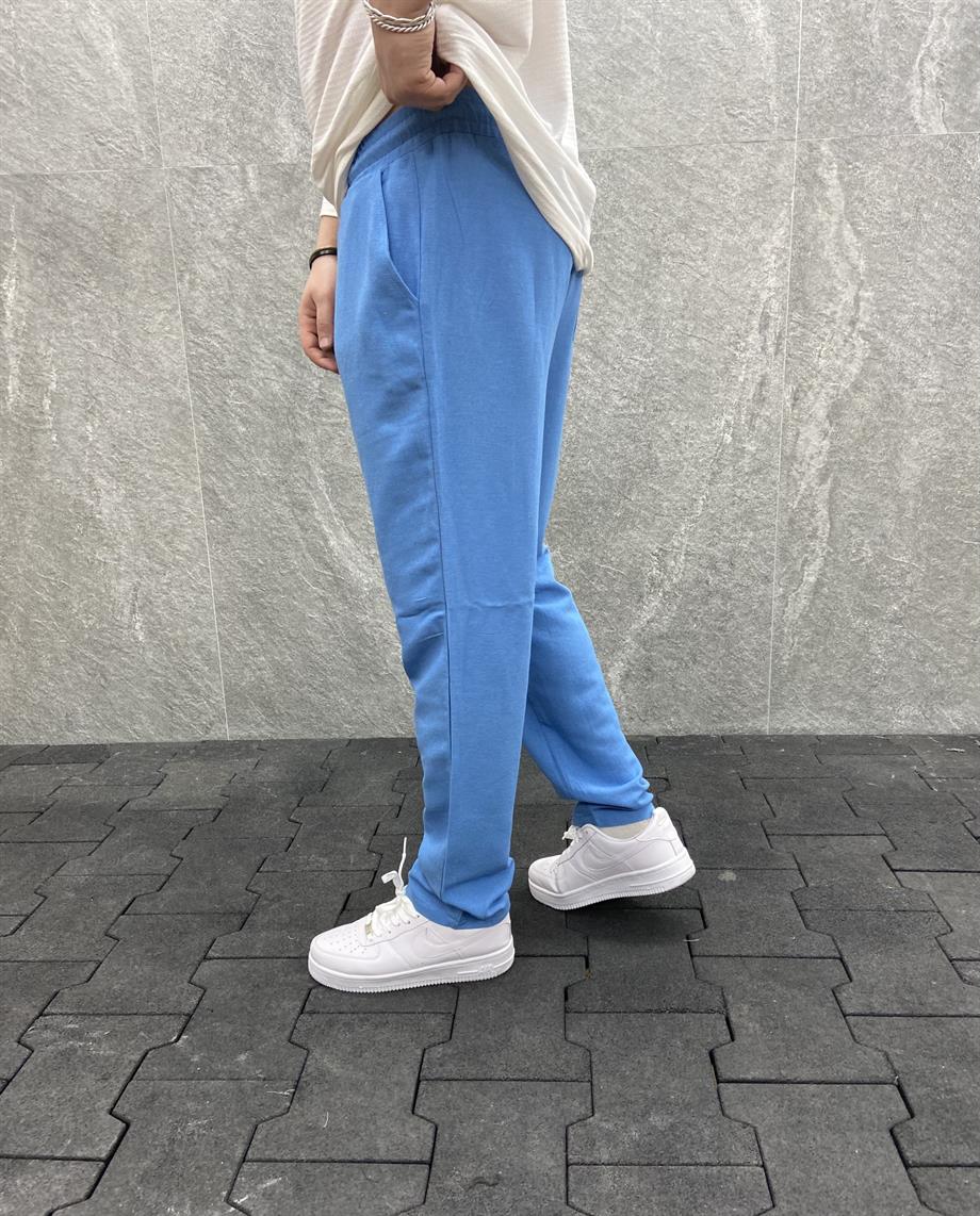Beli Lastikli Pamuk Dokuma Cep Nervür Detaylı İndigo Baggy Pantolon
