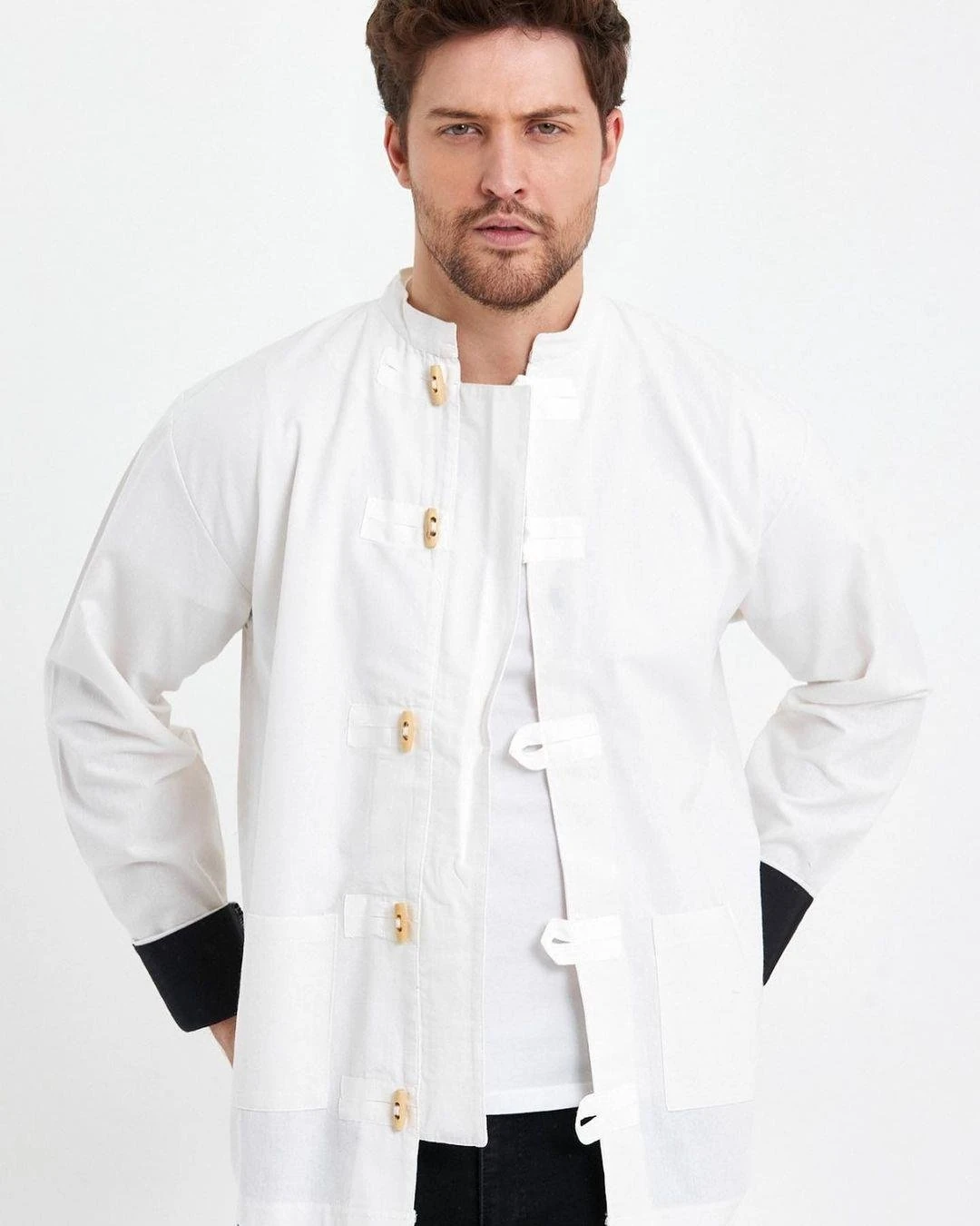 Oversize Hakim Yaka Tokyo Pamuk Keten Beyaz Gömlek